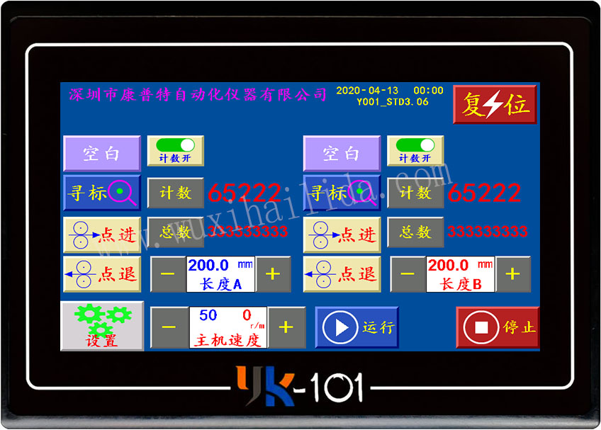 无锡海利达自动化仪器厂 YK-101触摸屏控制系统 使用说明书(制袋机极限版) 一、概述 YK-101控